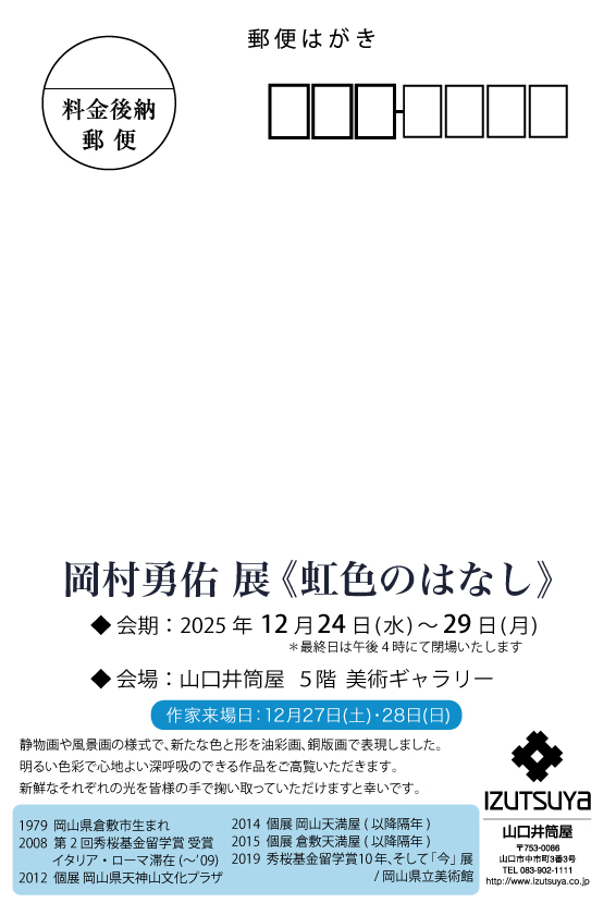 | 岡村 勇佑展《虹色のはなし》 2025年12月24日(水)~29日(月) 山口井筒屋(山口市) 美術画廊 |
